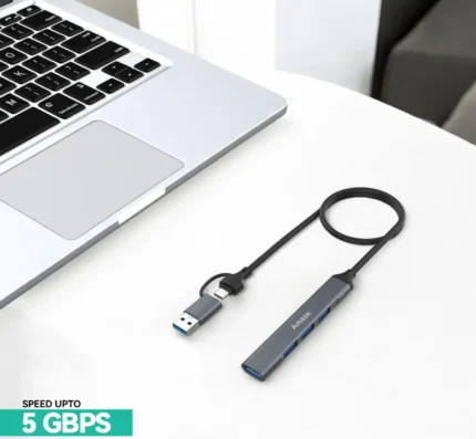 This Hub is a highly practical device designed for expanding the connectivity of your laptop, desktop, or USB-C device. This compact and versatile hub provides multiple USB 3.0 ports for fast data transfer and peripheral connections, making it ideal for both professional and personal use.