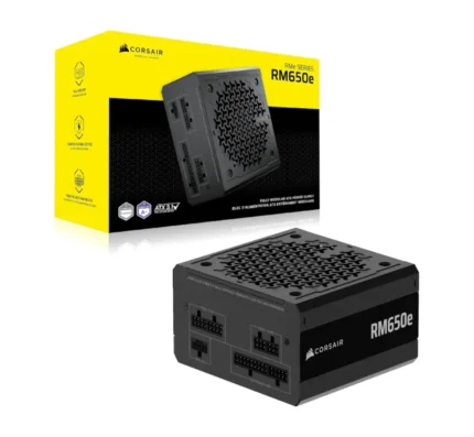 The Corsair RM650e is a high-efficiency, fully modular power supply built to meet the latest Intel ATX 3.1 and PCIe 5.1 standards. It features a native 12V-2x6 GPU power cable, Cybenetics Gold efficiency rating, and 105°C-rated capacitors for long-term reliability.