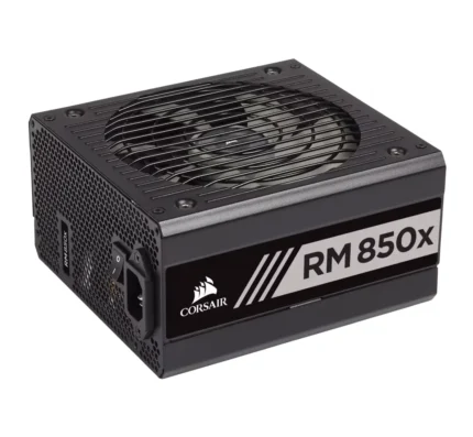 The Corsair RMx Series RM850x 850 W power supply is a premium option for enthusiasts, offering 80 PLUS Gold efficiency, full modular cabling, and quiet operation thanks to its optimized fan curve and “Zero RPM” mode. Built with 100% Japanese 105 °C capacitors and precise voltage regulation, it’s designed for durability and stable performance.