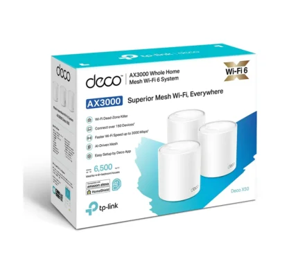 Upgrade your home or office network with the TP-Link Deco X50 (3-Pack) a powerful Wi-Fi 6 mesh system designed to deliver seamless, ultra-fast, and reliable wireless coverage across every corner of your space. With three Deco units working together, you’ll enjoy consistent high-speed internet and uninterrupted connectivity for all your smart devices.