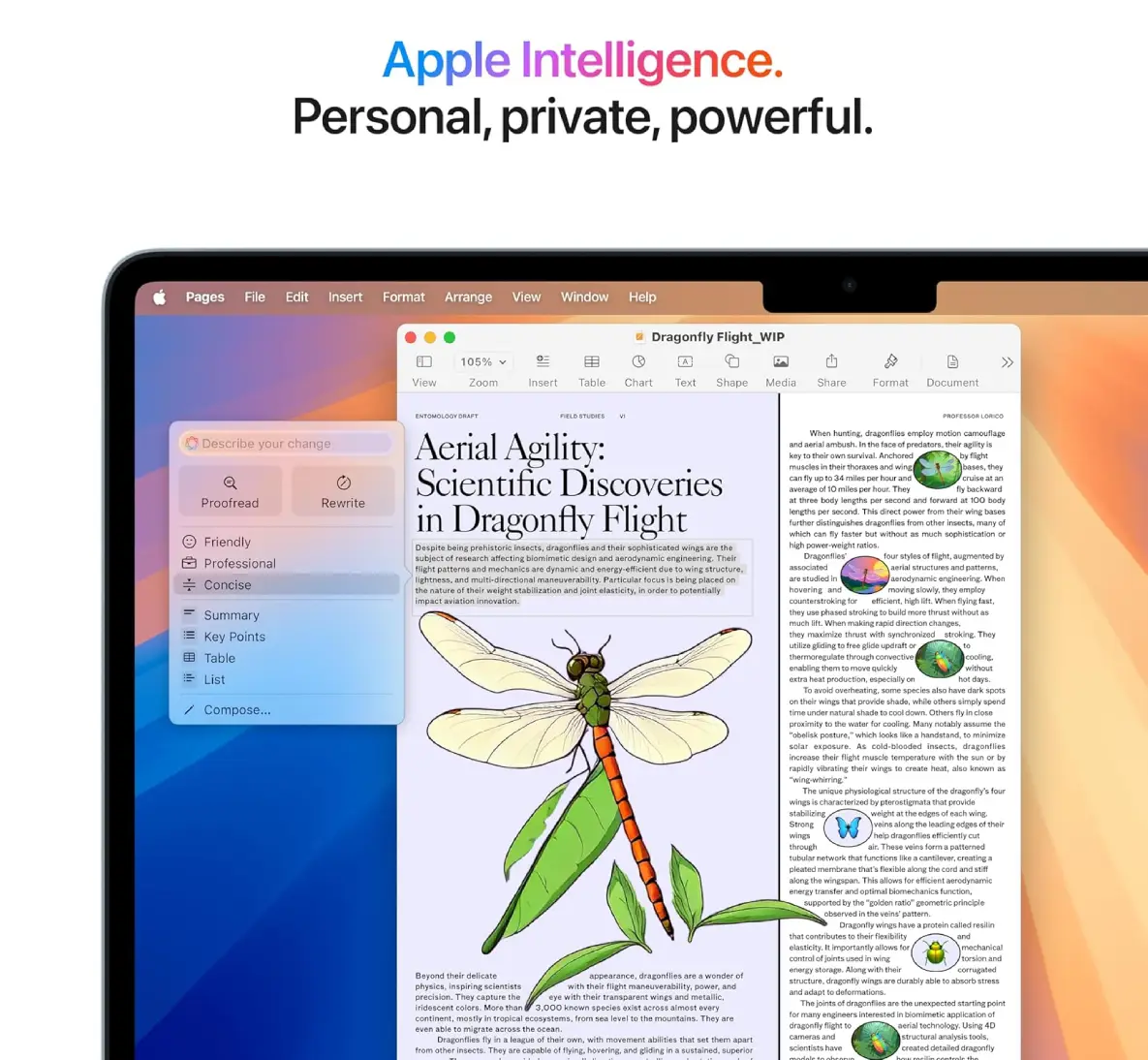 Apple Intelligence is the personal intelligence system that helps you write, express yourself, and get things done effortlessly. With groundbreaking privacy protections, it gives you peace of mind that no one else can access your data, not even Apple.