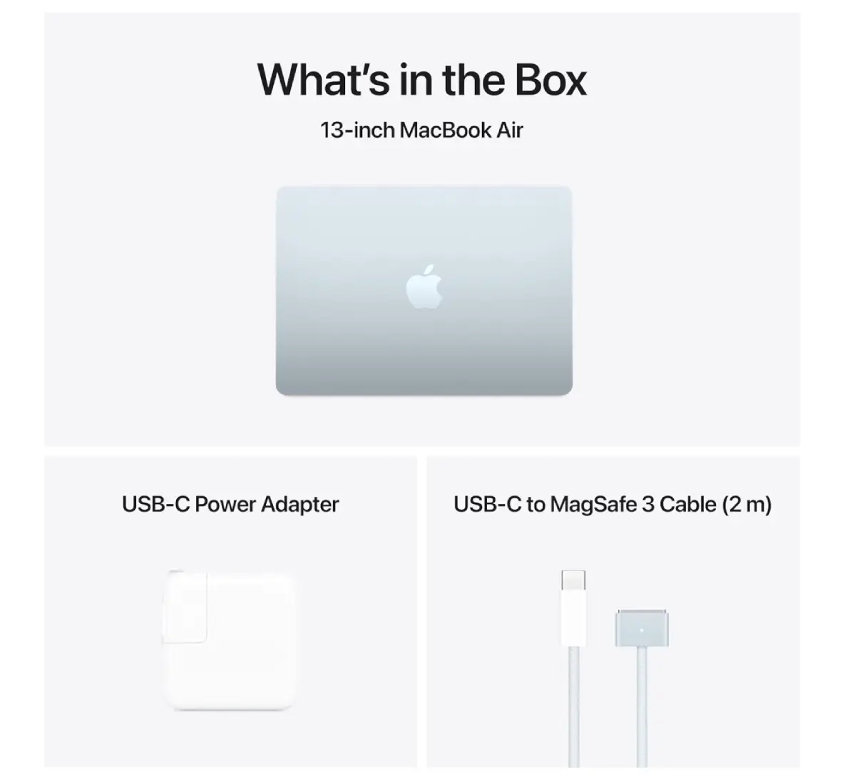 MacBook Air features two Thunderbolt 4 ports, a MagSafe charging port, a headphone jack, Wi-Fi 6E, and Bluetooth 5.3. And it supports up to two external displays.