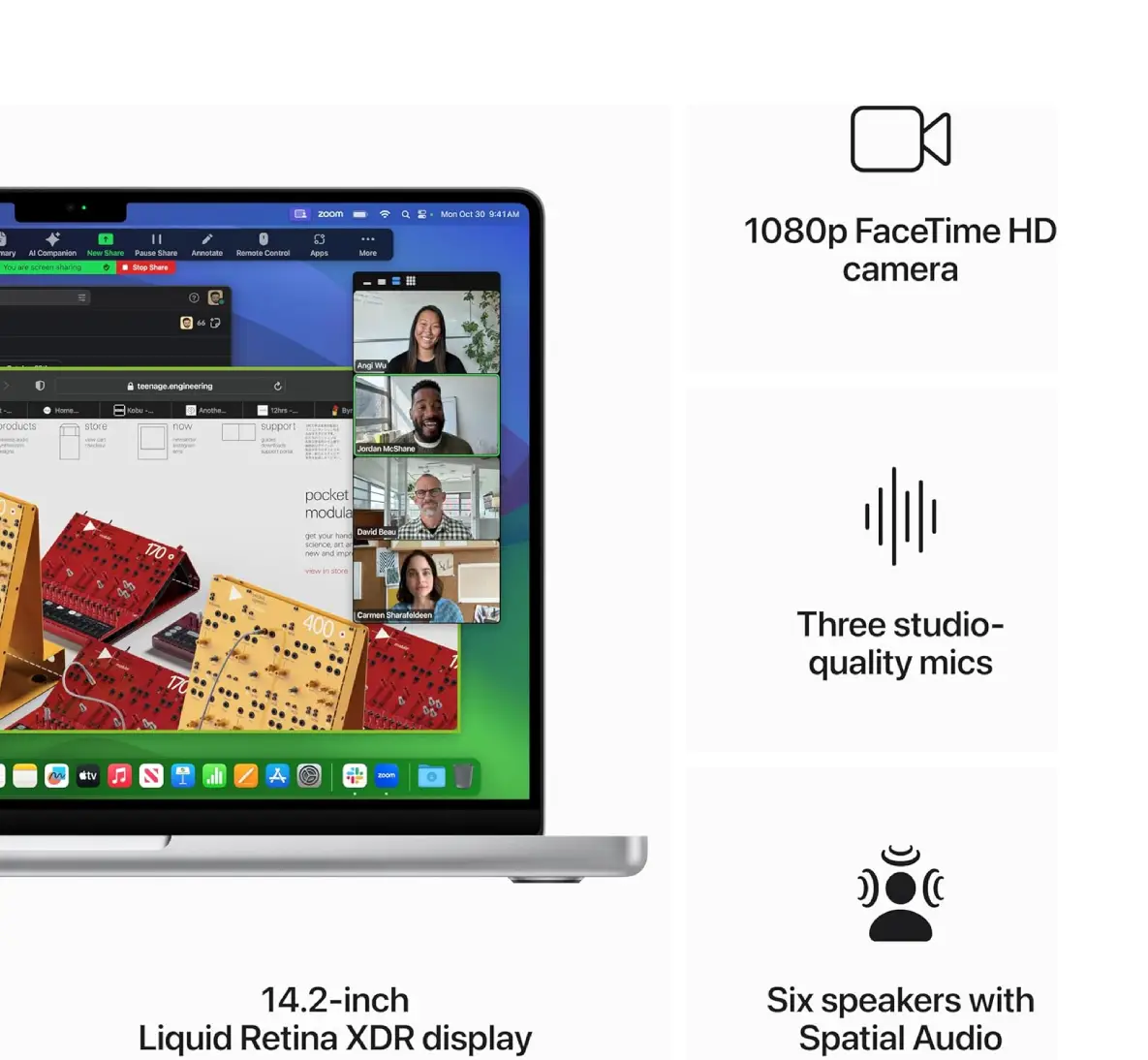 Advanced Camera & Audio – Look sharp with a 1080p FaceTime HD camera, sound crystal-clear with a studio-quality three-mic array, and enjoy immersive audio with a six-speaker system and Spatial Audio.