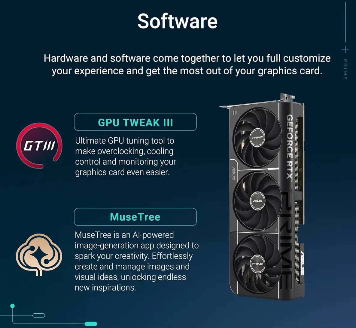 Software: ASUS GPU Tweak III for real-time performance tuning, temperature monitoring, and fan control