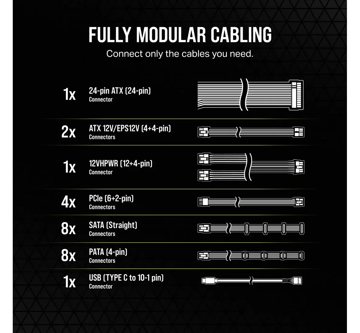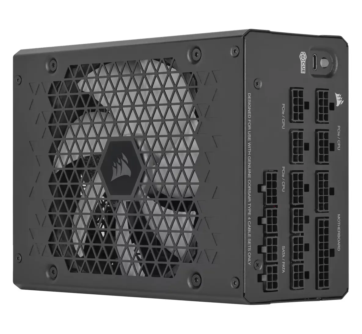 Digital Control & Monitoring — fully digital design allows for precise regulation and features monitoring through Corsair’s iCUE software (fan control, rail distribution, etc.).