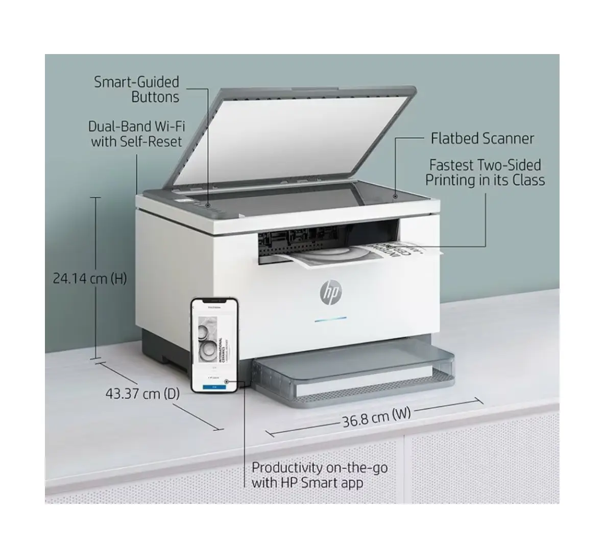 Boost productivity with the HP LaserJet MFP M236dw — a compact, high-performance multifunction printer designed for business. Enjoy wireless connectivity, smart setup, and mobile solutions with fast duplex printing and versatile scanning options.