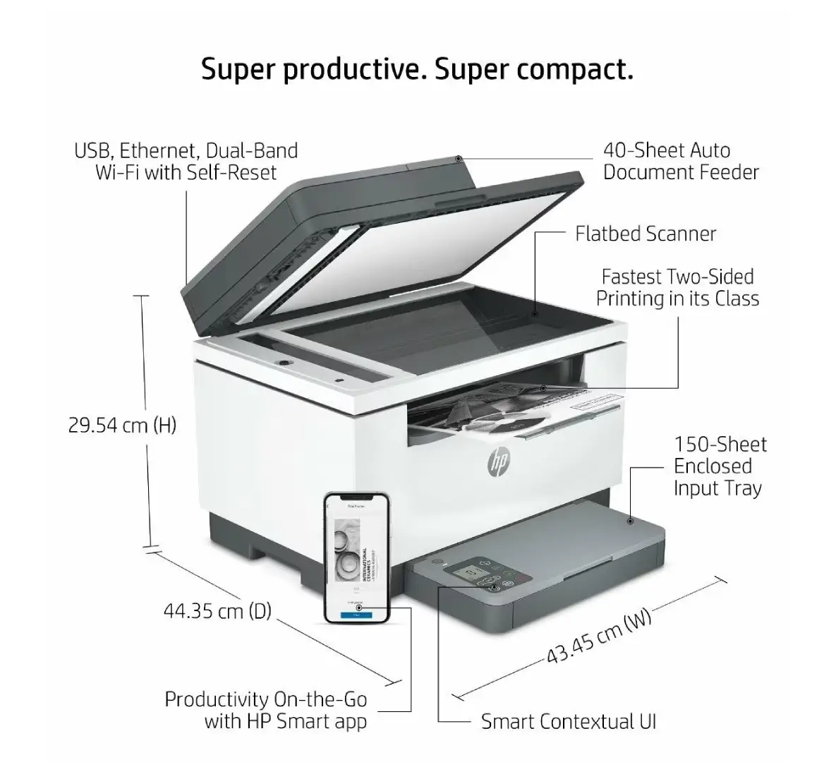 Get wireless two-sided printing, smart setup, and mobility solutions with enterprise-level productivity. This compact A4 black-and-white multifunction printer is perfect for business environments that demand efficiency and reliability.