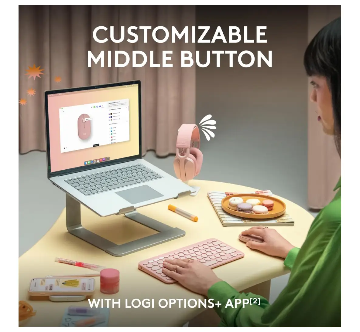 Customizable Middle Button – Personalize shortcuts with the Logi Options+ app, making your workflow faster with quick access to apps like Spotify, WhatsApp, and more.