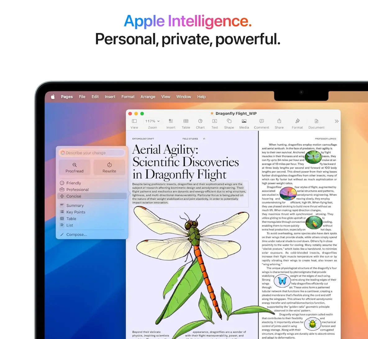 Apple Intelligence is the personal intelligence system that helps you write, express yourself, and get things done effortlessly. With groundbreaking privacy protections, it gives you peace of mind that no one else can access your data — not even Apple.