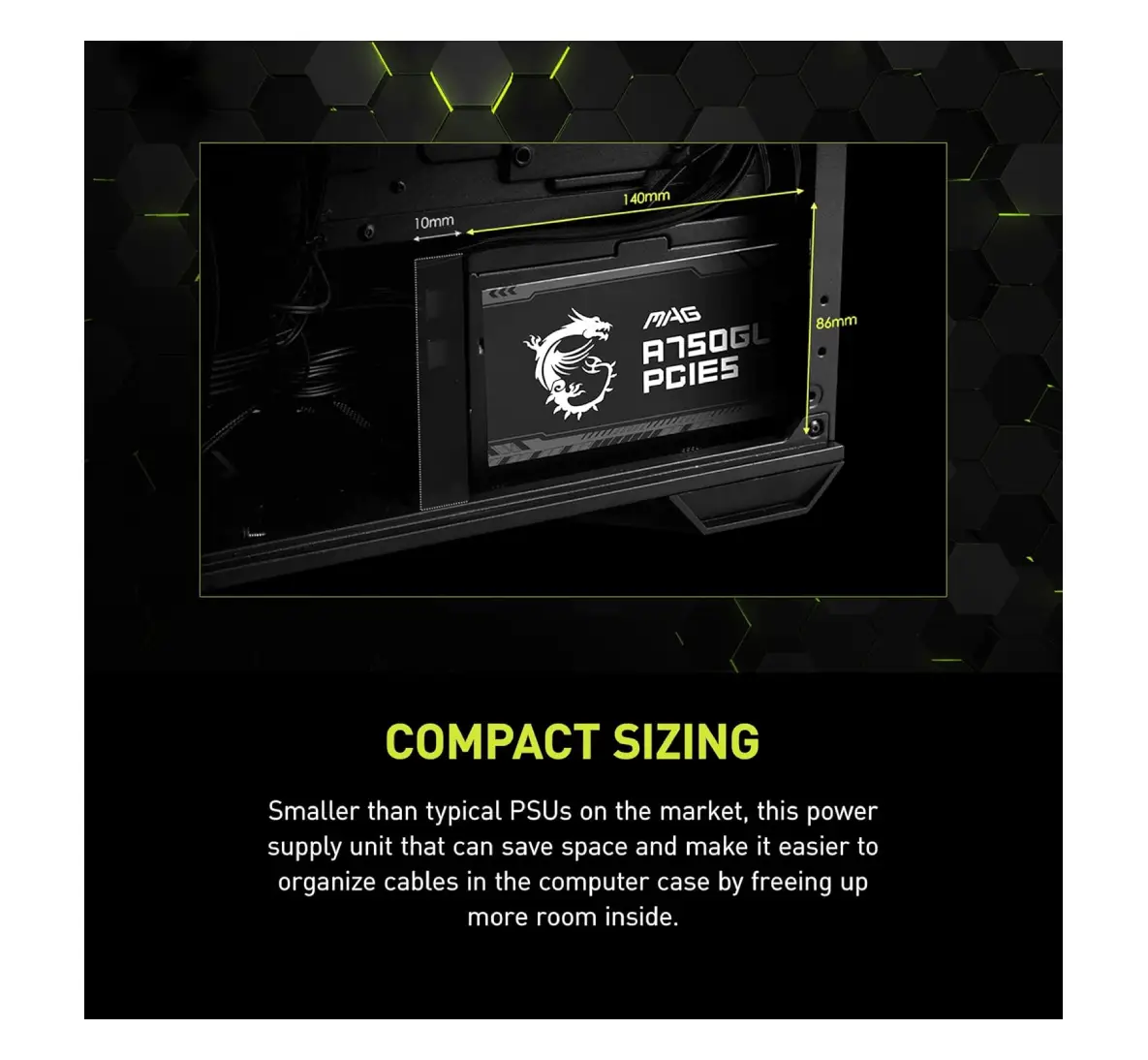 Power up confidently — the MAG A750GL PCIE5 combines efficiency, flexibility, and MSI’s signature build quality for your next build.