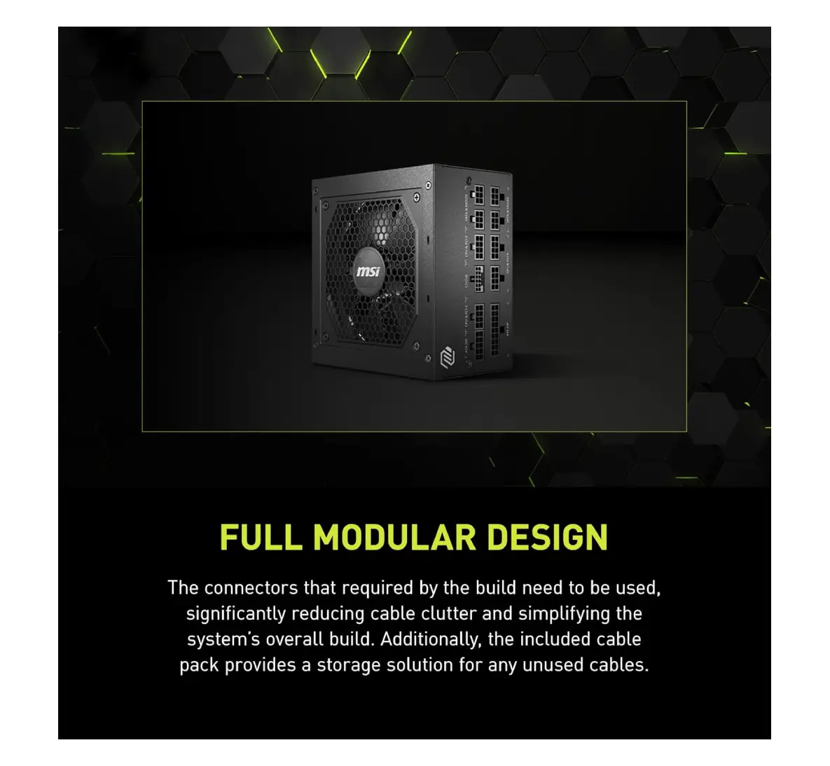 Fully Modular Cables: Only use the cables you need, keeping your build clean and improving airflow