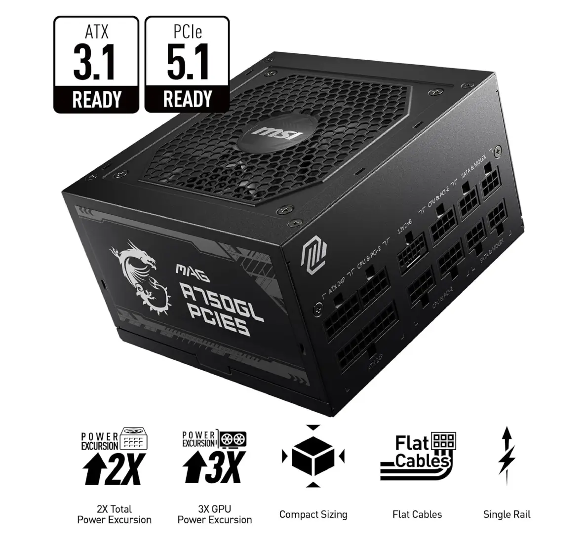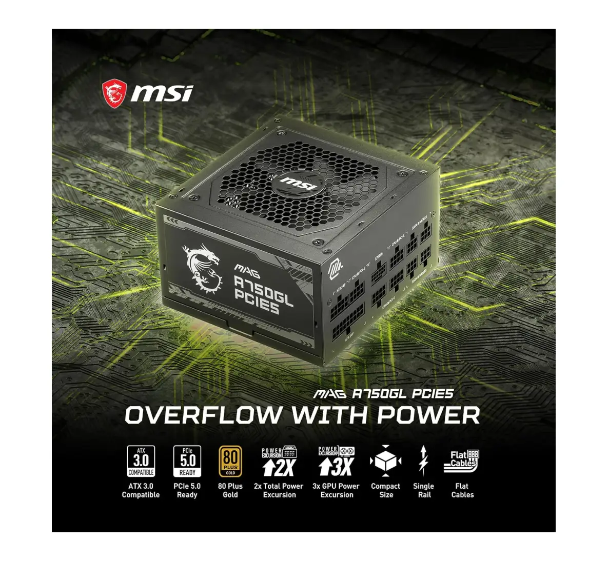 MSI MAG A750GL PCIE5 750W 80 PLUS Gold Fully Modular Power Supply