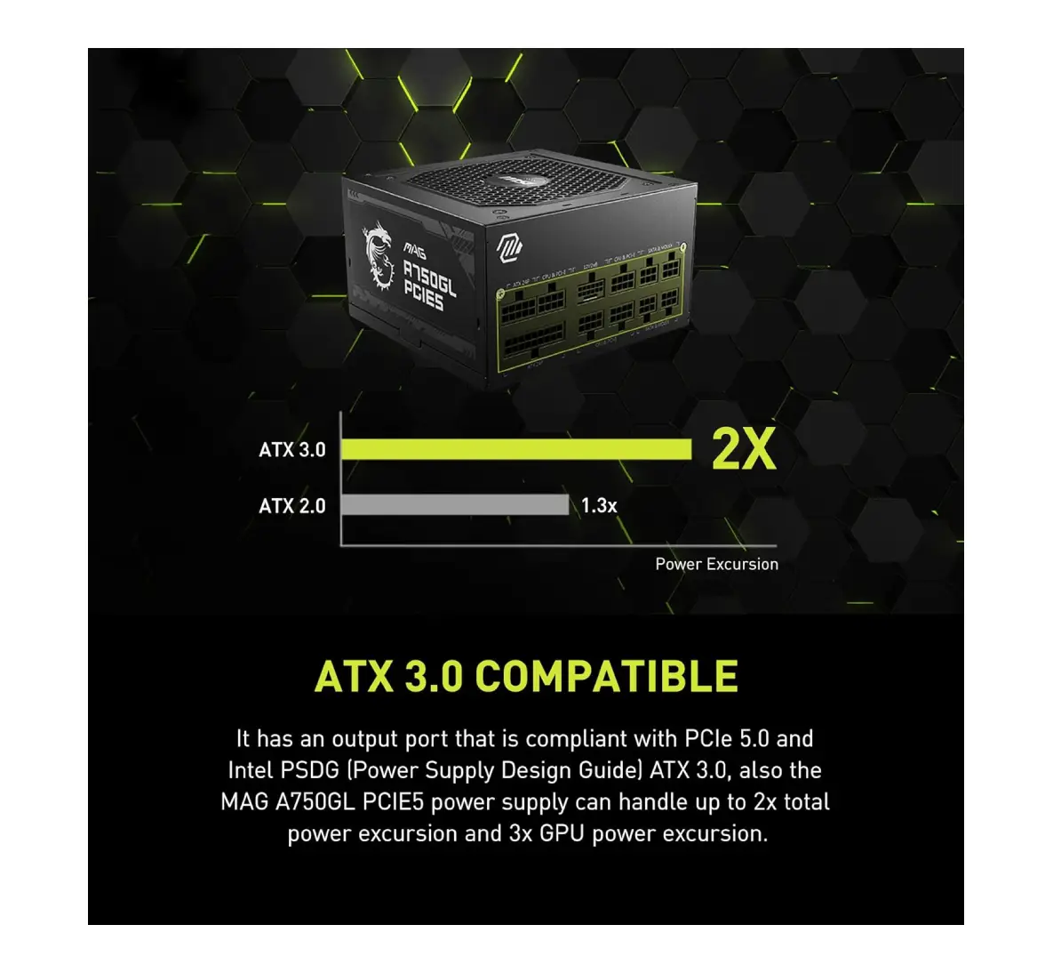 ATX 3.1 / PCIe 5.1 Compatibility — supports latest power standards and modern GPUs
