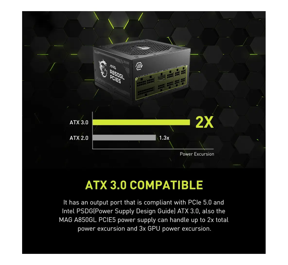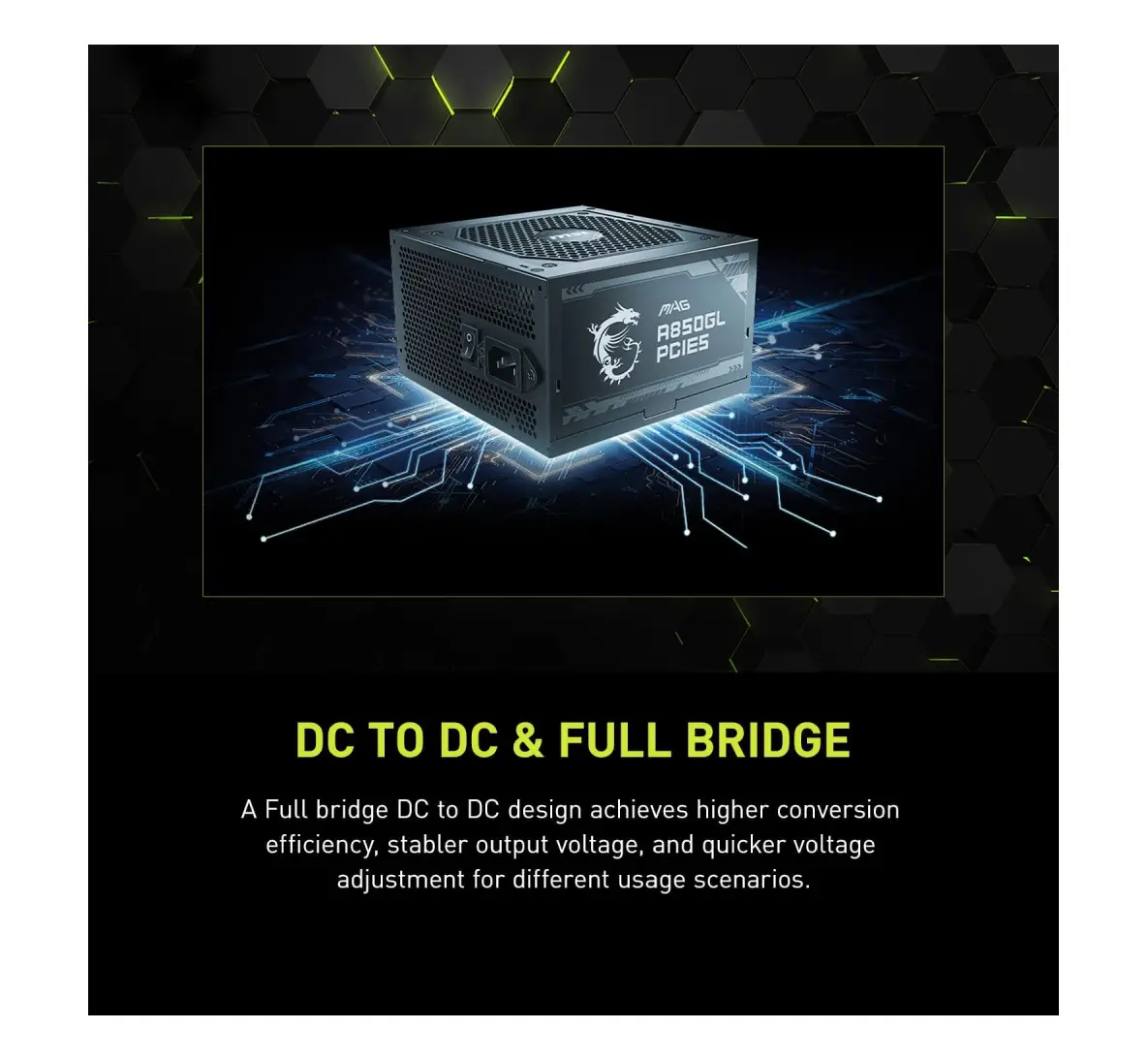 MSI MAG A850GL PCIE5 – 850W 80 PLUS Gold Fully Modular Gaming Power Supply (Black)