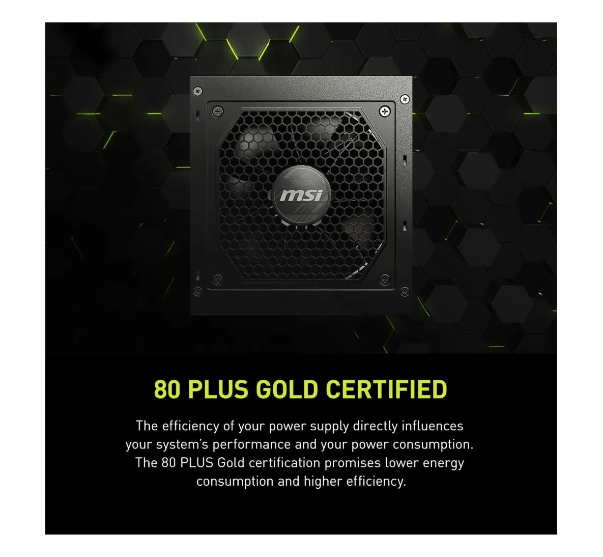 80 PLUS Gold Efficiency — delivers high efficiency under load, reducing energy waste and heat