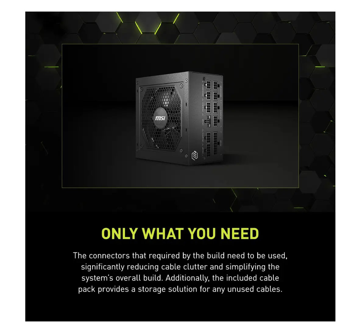 Full Modular Design — detachable cables make for cleaner builds and better airflow